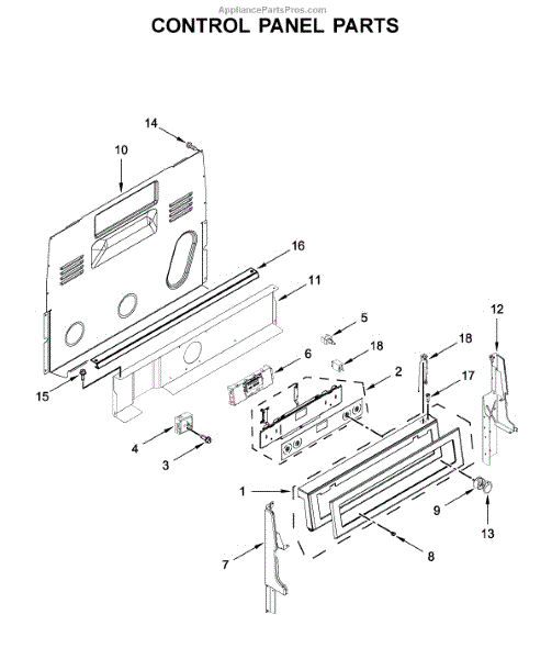 This control bracket secures the appliance control or console assembly, keeping the control board and user interface stable for reliable operation. It helps prevent loose or misaligned controls that can affect button response or display visibility. What it does: