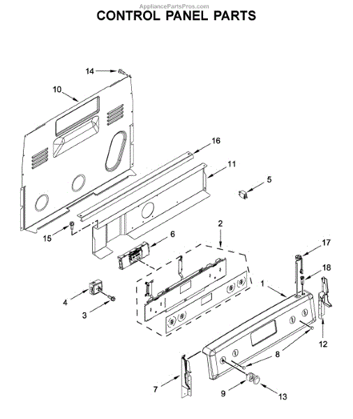 This control bracket secures the appliance control or console assembly, keeping the control board and user interface stable for reliable operation. It helps prevent loose or misaligned controls that can affect button response or display visibility. What it does: