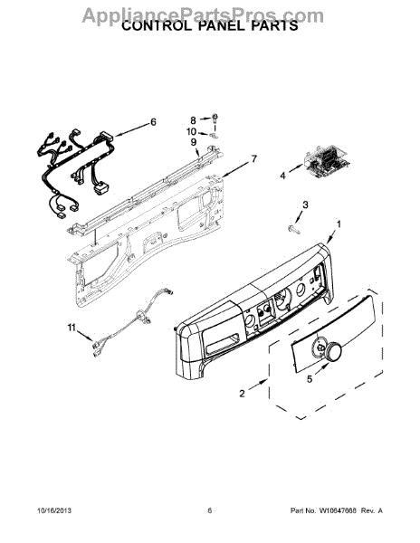 This wire harness routes power and signals between the appliance control and components to restore reliable electrical connections and normal operation. It replaces damaged or worn wiring to help stop intermittent power, unresponsive controls, or component failures. What it does: