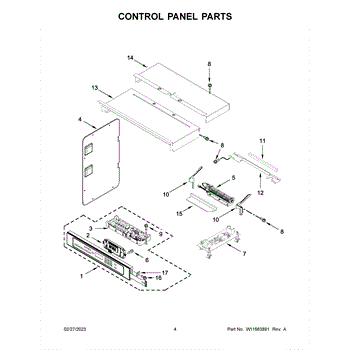 This wide interface board is the appliance's user-facing electronic control that receives touchpad/input signals and communicates with the main control to run cycles. Replacing a faulty board restores control responsiveness and display feedback. What it does: