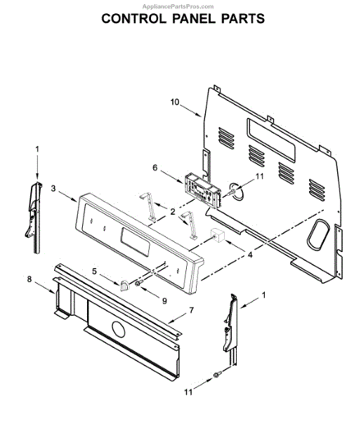 This control bracket secures the appliance control or console assembly, keeping the control board and user interface stable for reliable operation. It helps prevent loose or misaligned controls that can affect button response or display visibility. What it does: