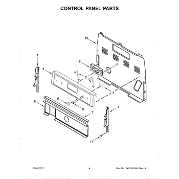 This end cap panel covers and finishes the exposed edge of a control or cabinet panel for a clean, factory appearance while protecting edges from chips and wear. It restores the look and helps prevent debris buildup in the gap. What it does: