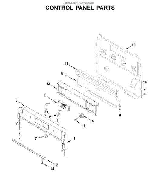 This control bracket secures the appliance control or console assembly, keeping the control board and user interface stable for reliable operation. It helps prevent loose or misaligned controls that can affect button response or display visibility. What it does:
