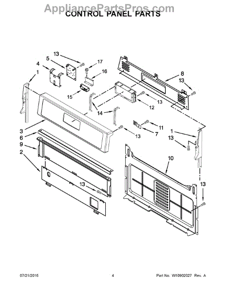 This control panel is the user-facing console that houses the oven/surface controls and display, restoring clear button response and readable display for safe, reliable operation. It replaces a cracked, worn, or nonresponsive console. What it does:
