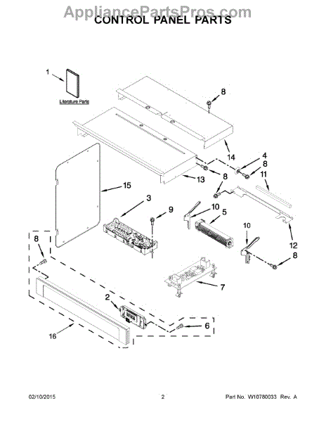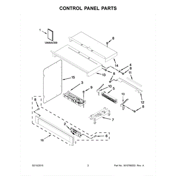 This wide interface board is the appliance's user-facing electronic control that receives touchpad/input signals and communicates with the main control to run cycles. Replacing a faulty board restores control responsiveness and display feedback. What it does: