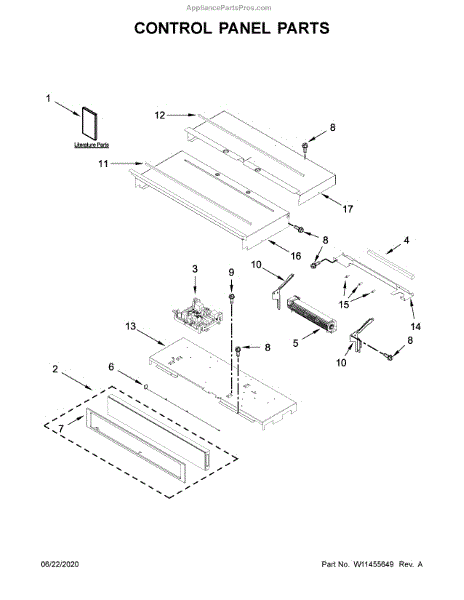 This console is the replacement control panel top that houses the appliance's buttons and display, restoring the user interface and protecting the underlying electronics for reliable operation and a clean appearance. What it does