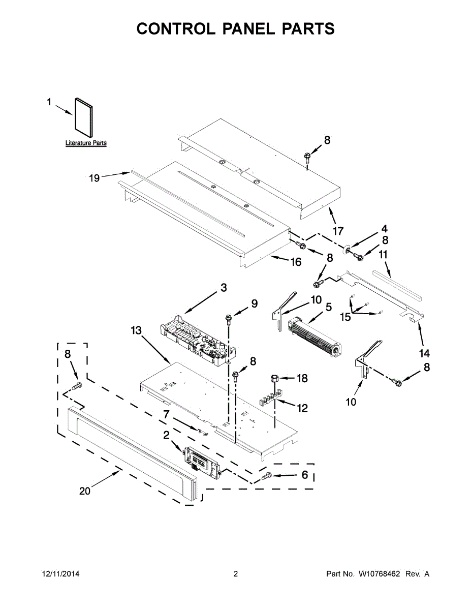 The Oven Control Panel is an OEM part for Whirlpool wall ovens and ranges. It houses the touch controls, digital displays, and electronic components that operate all oven functions selected by the user.