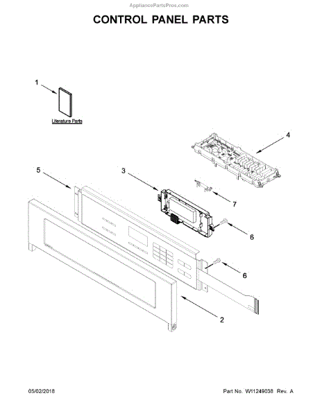 This control panel is the appliance's front console that houses the user controls and display, restoring reliable program selection and readable status feedback for the appliance. It replaces a cracked, unresponsive, or worn console surface. What it does: