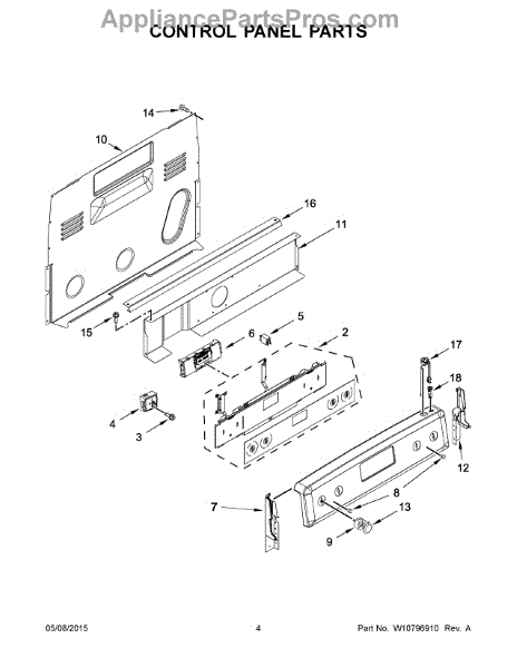 This control bracket secures the appliance control or console assembly, keeping the control board and user interface stable for reliable operation. It helps prevent loose or misaligned controls that can affect button response or display visibility. What it does: