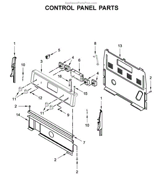 This control bracket secures the appliance control or console assembly, keeping the control board and user interface stable for reliable operation. It helps prevent loose or misaligned controls that can affect button response or display visibility. What it does: