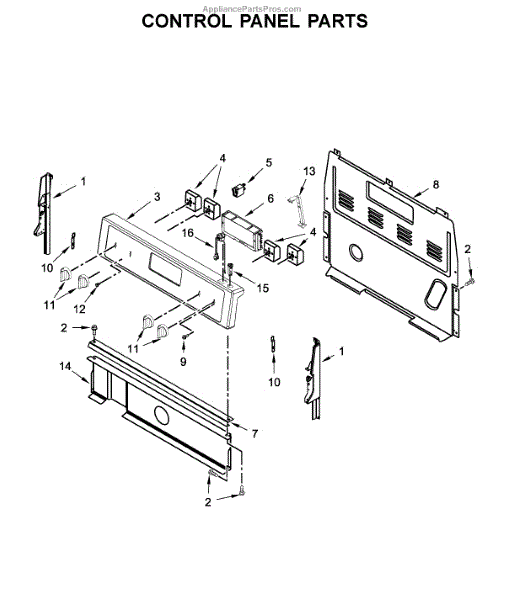 This control bracket secures the appliance control or console assembly, keeping the control board and user interface stable for reliable operation. It helps prevent loose or misaligned controls that can affect button response or display visibility. What it does:
