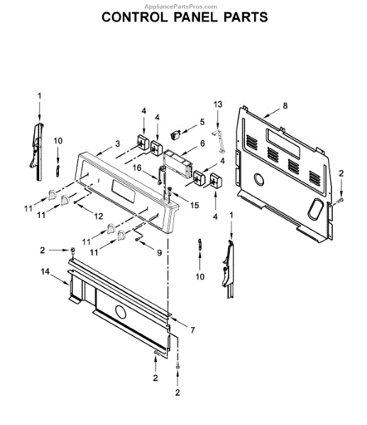 This control bracket secures the appliance control or console assembly, keeping the control board and user interface stable for reliable operation. It helps prevent loose or misaligned controls that can affect button response or display visibility. What it does: