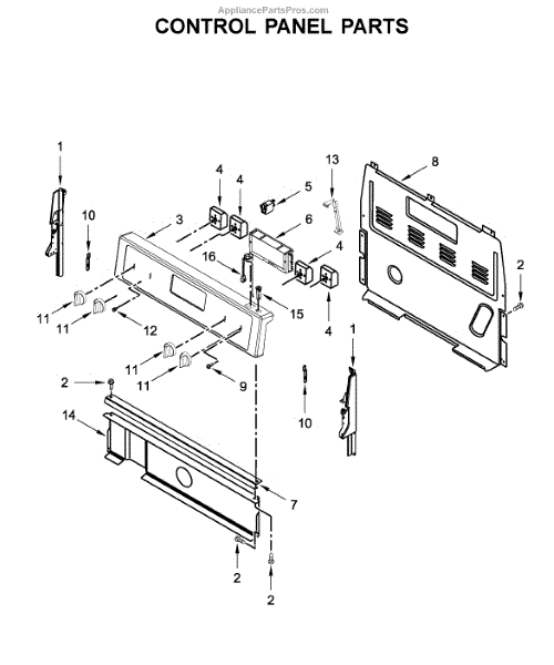 This control bracket secures the appliance control or console assembly, keeping the control board and user interface stable for reliable operation. It helps prevent loose or misaligned controls that can affect button response or display visibility. What it does: