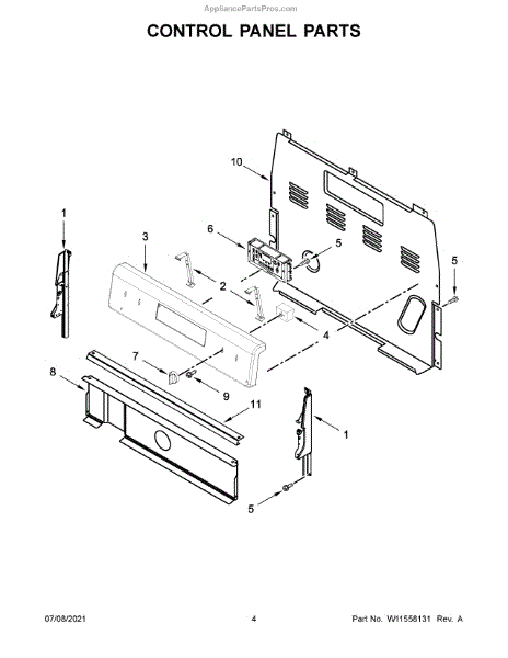 The Control Panel is an OEM component for Whirlpool ranges. Located prominently at the top front, its easy-clean interface toggles surface units and oven functions at your fingertips.
