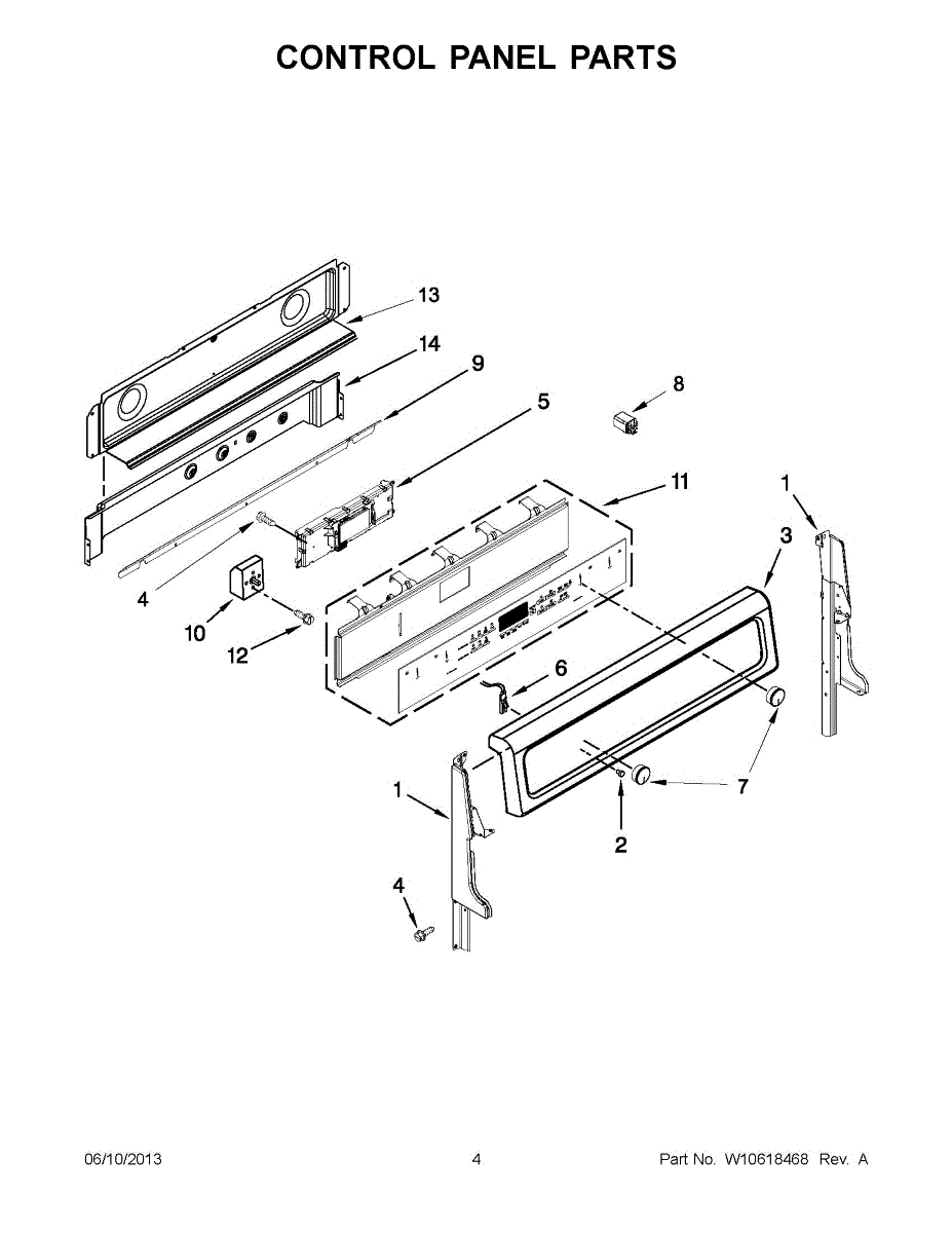 Stainless steel control panel trim for electric and gas ranges. Replaces scratched, dented, or cracked panels. Installs on front with screws.