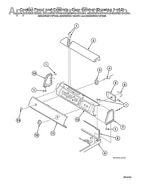 This left-side white panel end replaces a damaged or worn corner trim on the control console or front fascia to restore appearance and protect edges. Designed to match original fit and finish on compatible Speed Queen units. What it does: