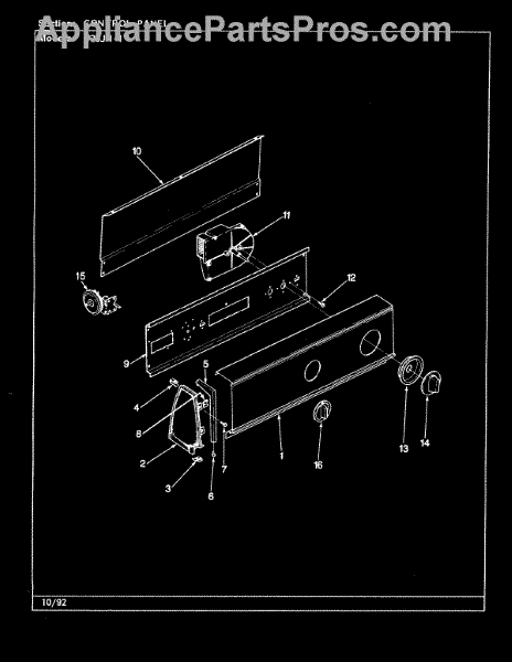Parts for Magic Chef W20JA1: 06 - Control Panel (Rev. G-L) Parts