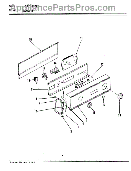 Parts for Magic Chef YE20JY4: 01 - Control Panel (Rev. A-D) Parts