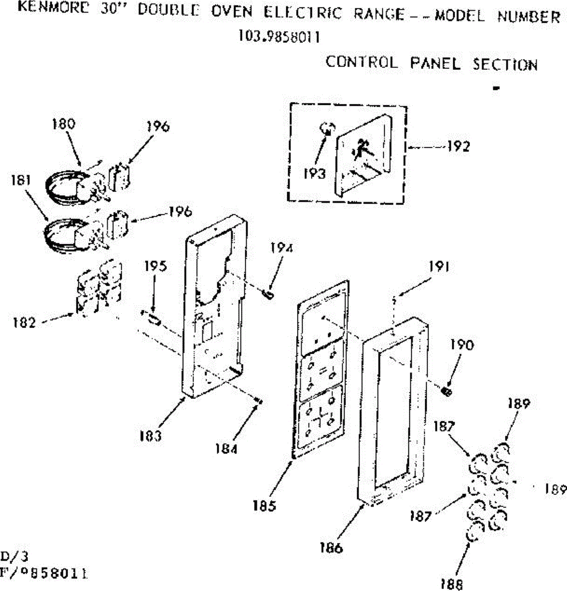 Parts for Kenmore 103.9858011 (1039858011, 103 9858011): Control Panel Section Parts