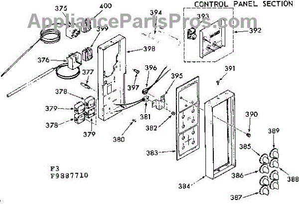 Parts for Kenmore 103.9887710 (1039887710, 103 9887710): Control Panel Section Parts