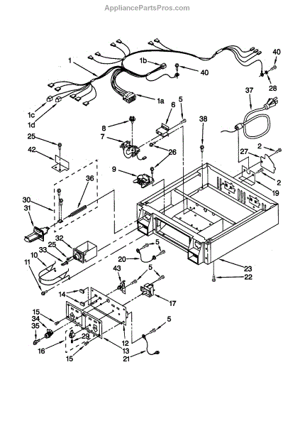 Bracket extension for dryers and laundry centers. Mounts to provide structural support for internal components. Replace if bent, broken, or missing.