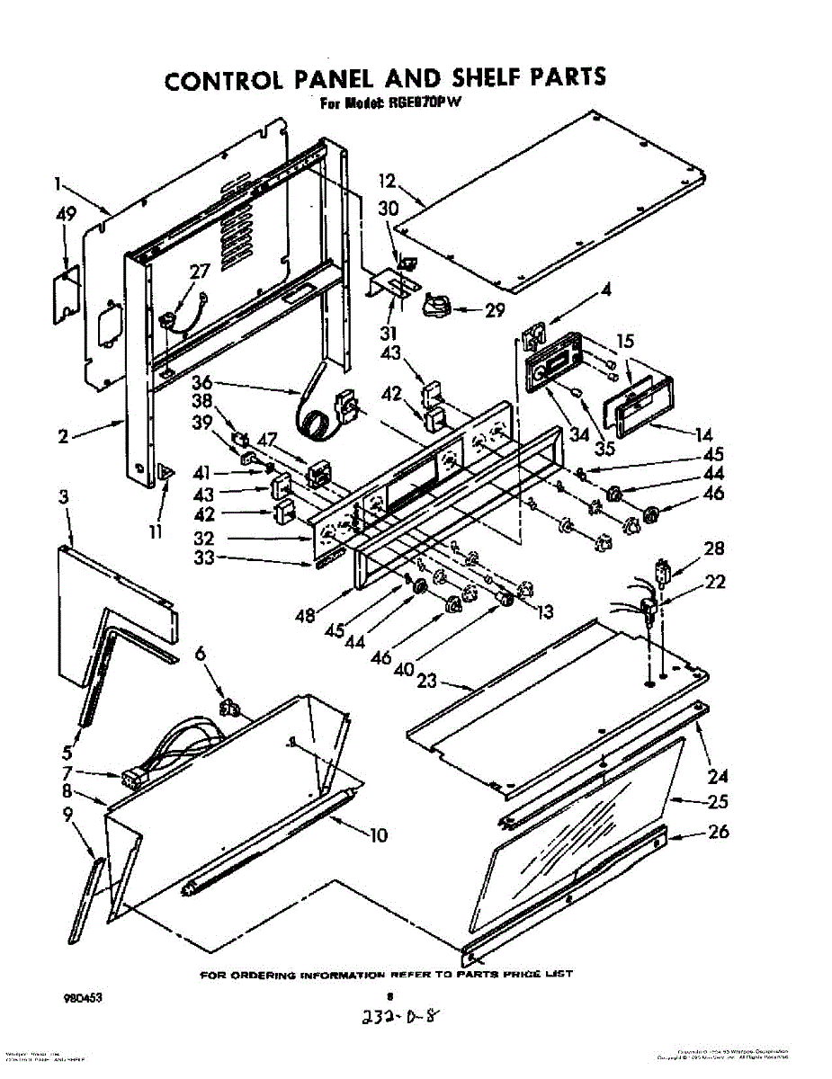 Parts for Whirlpool RGE970PW: 08 - Control Panel And Shelf Parts
