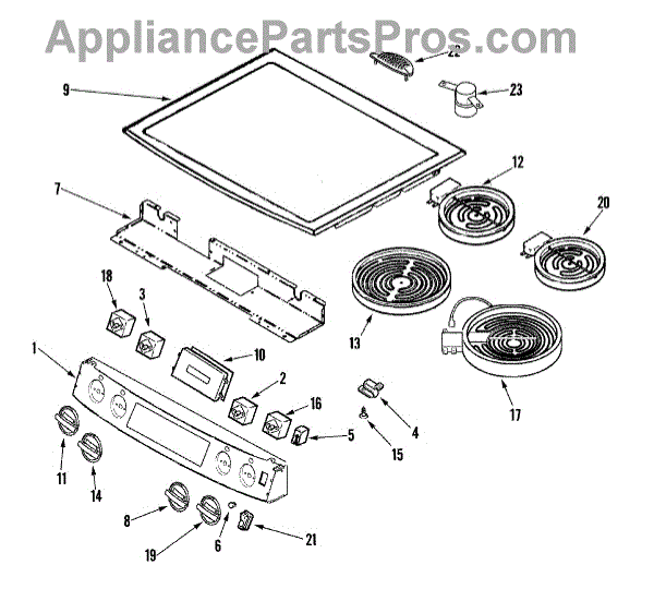 Burner not heating? This surface radiant element sits beneath the glass cooktop and restores heat to a cold zone. Moderately difficult repair.