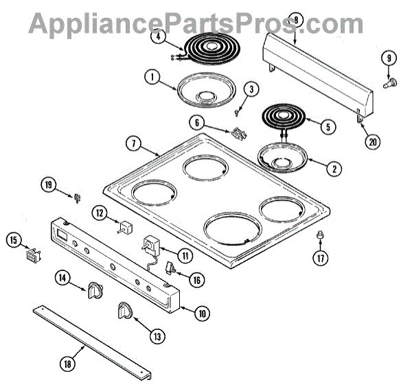Parts for Magic Chef CER1110AAT: 02 - Control Panel / Top Assembly Parts