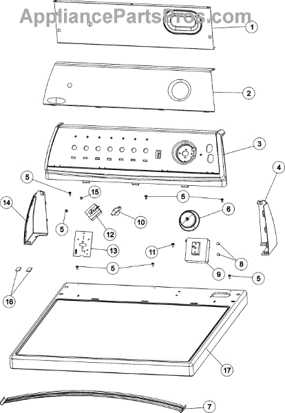 Mounts the washer top panel to the cabinet frame. Replace if screw is stripped, rusted, missing, or damaged during cabinet disassembly and repair work.