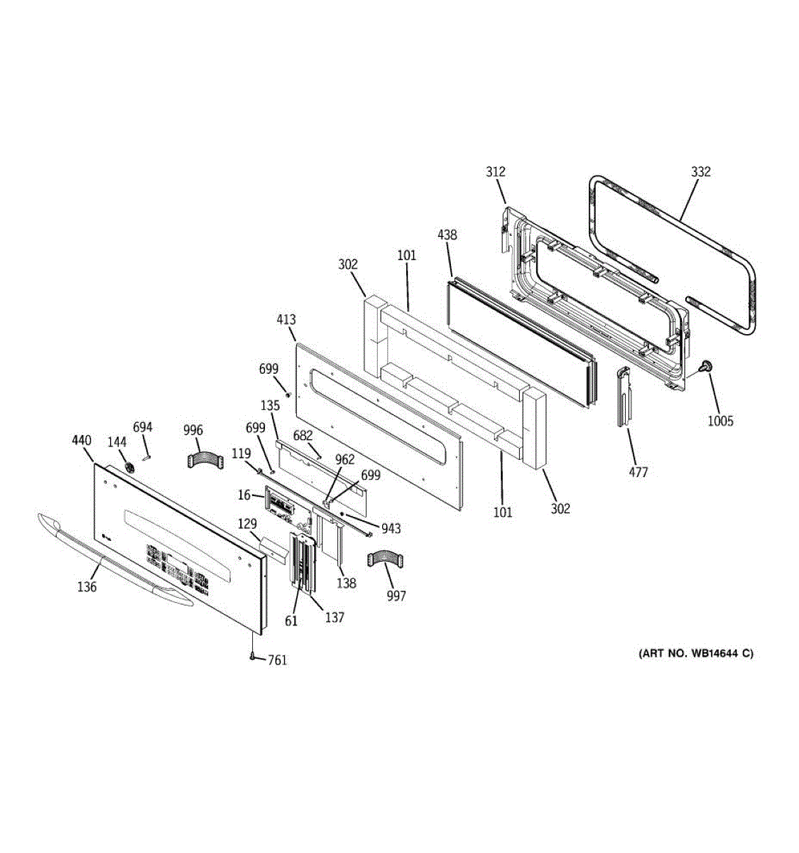 Replaces cracked, shattered, or damaged oven door window pack assembly. Restores clear exterior appearance on upper or lower oven doors. Direct fit.