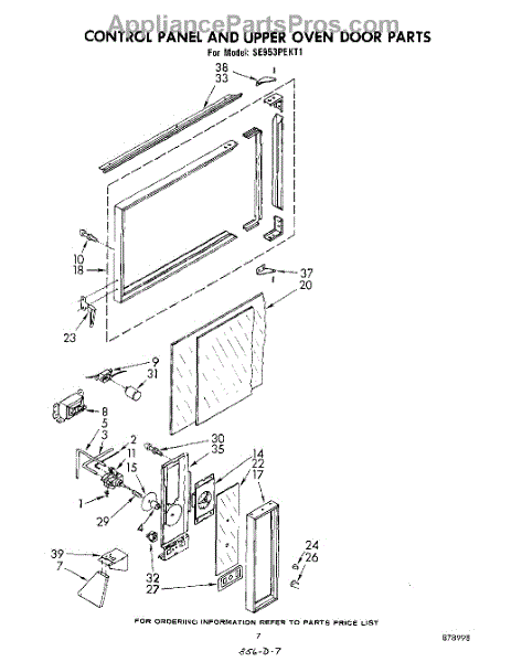 Parts for Whirlpool SE953PEKT1: 05 - Control Panel And Upper Oven Door Parts