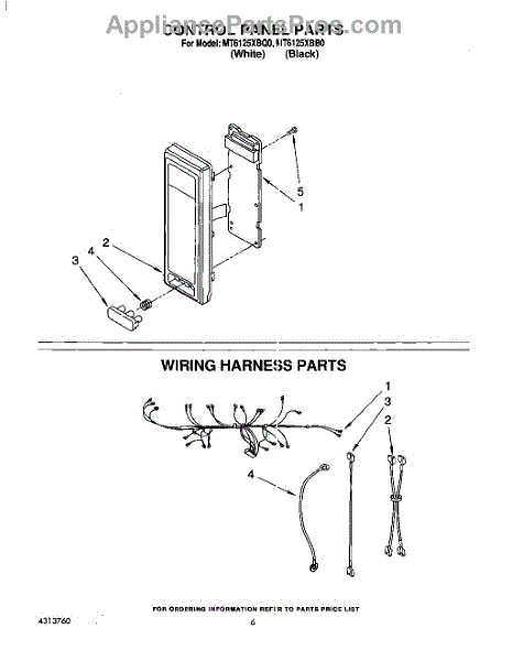 Parts for Whirlpool MT6125XBB0: 05 - Control Panel, Wiring Harness Parts