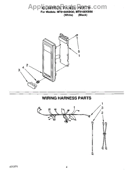 Parts for Whirlpool MT9160XBB0: 04 - Control Panel, Wiring Harness Parts