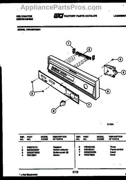 Parts for Frigidaire DWU6075GR1: 02 - Control Panels Parts