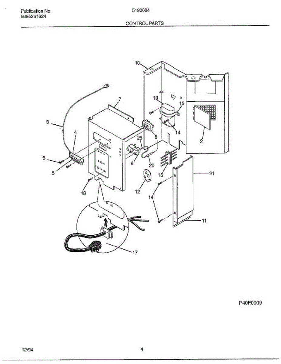 Parts for Frigidaire 5180004A: Control Parts