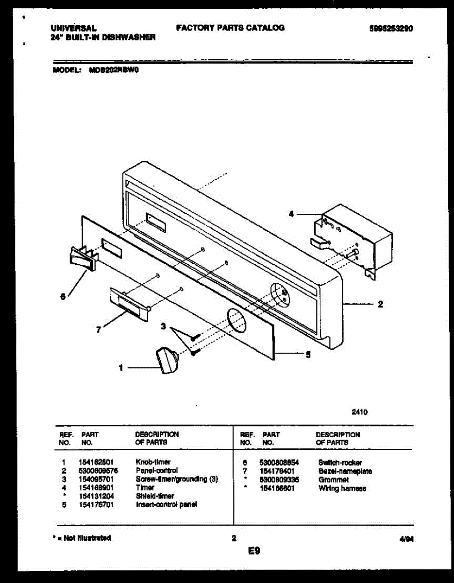 Parts for Frigidaire MDB202RBL0: 02 - Control Parts