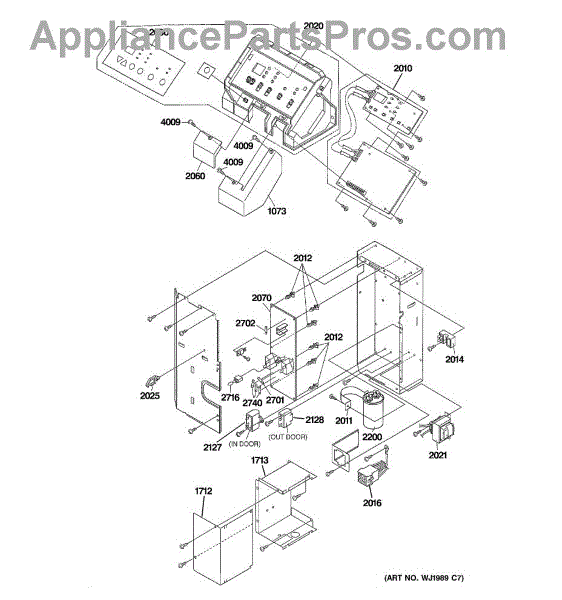 This control base assembly is the molded housing that holds the appliance's user-interface components. Replacing a damaged base restores proper alignment and secure mounting of the control board, switches, and display for dependable operation.
