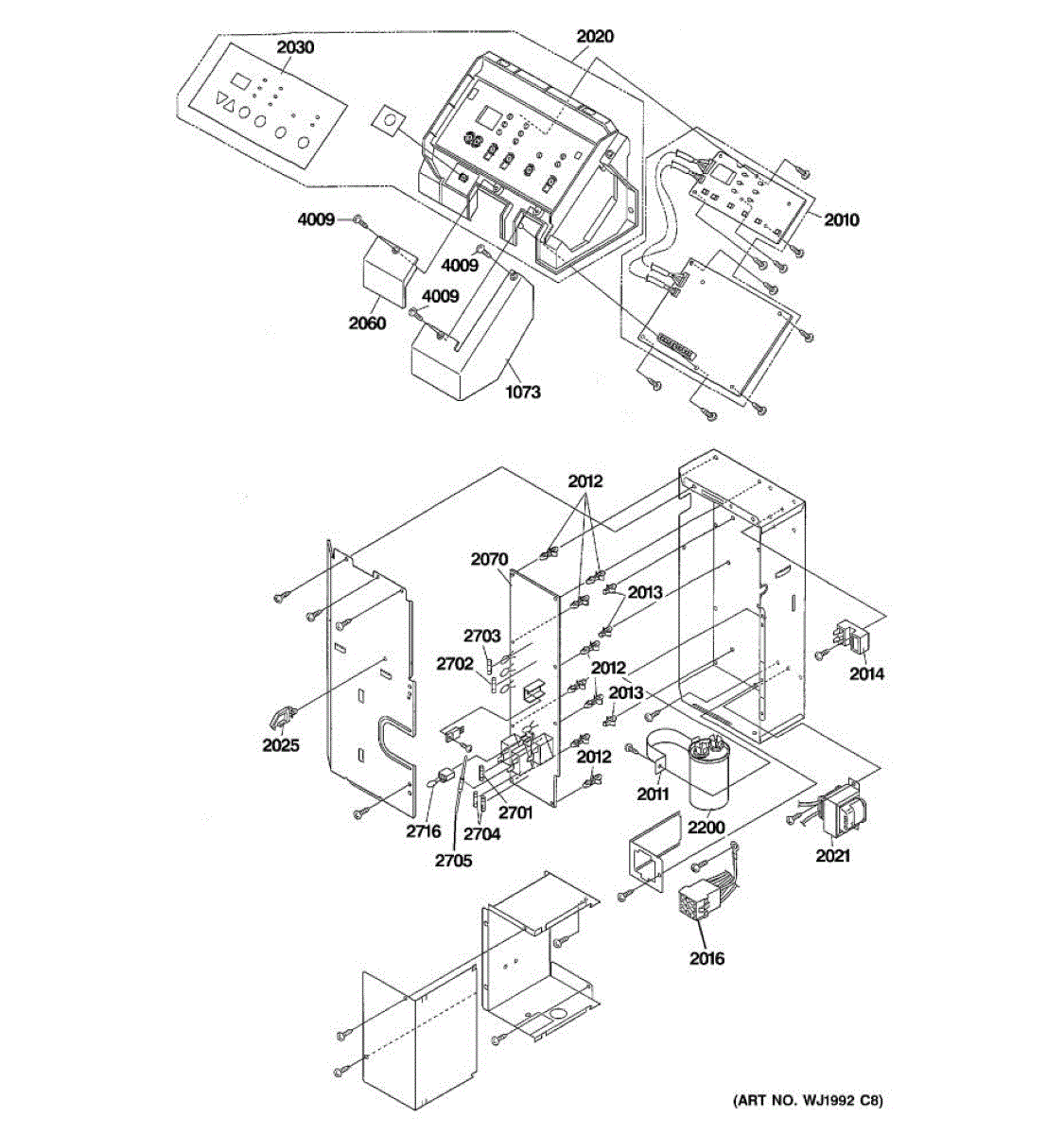 This control base assembly is the molded housing that holds the appliance's user-interface components. Replacing a damaged base restores proper alignment and secure mounting of the control board, switches, and display for dependable operation.