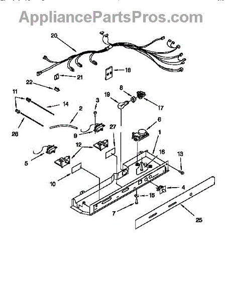 Control box housing for refrigerators. Mounts at the front top of the fresh food compartment. Replace if cracked, broken, or damaged housing.