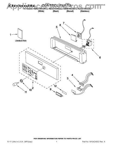 Parts for Kitchenaid KBMS1454SBL2: 01 - Control Parts