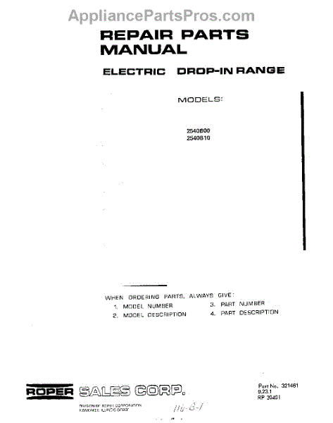 Parts for 2540B10