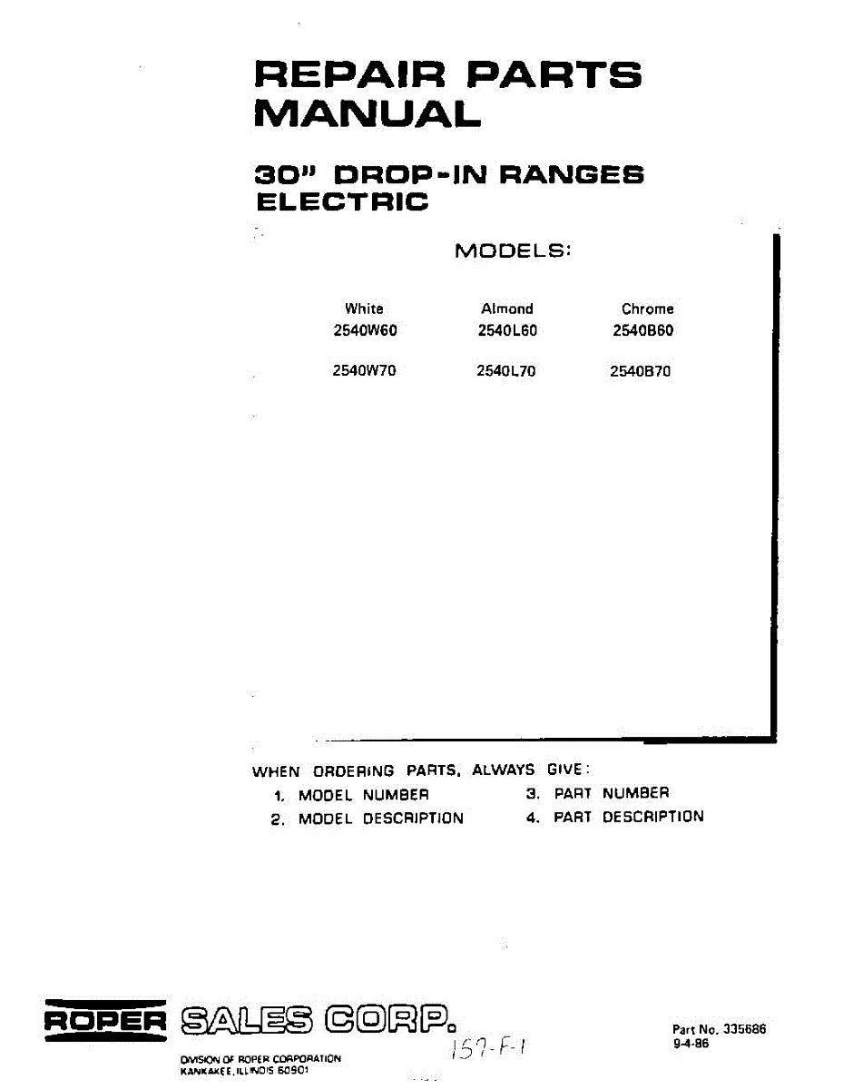 Parts for Whirlpool 2540W70: 01 - Control Parts