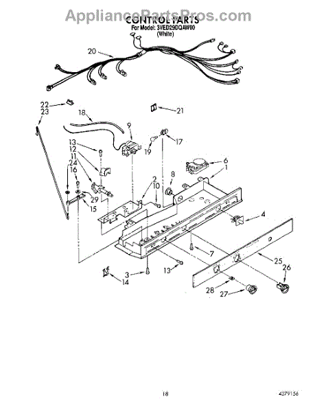 Parts for Whirlpool 3VED29DQAW00: 11 - Control Parts