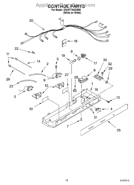 Parts for Whirlpool 3XART745GW02: 11 - Control Parts