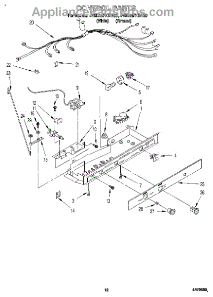 Parts for Whirlpool 4YED20PKBW00: 08 - Control, Lit / Optional Parts