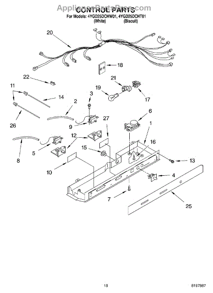 Parts for Whirlpool 4YGD25DCHT01: 11 - Control Parts