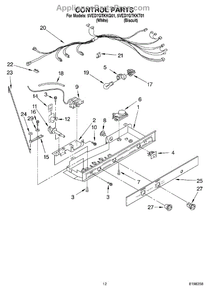 Parts for Whirlpool 5VED7GTKKQ01: 07 - Control Parts
