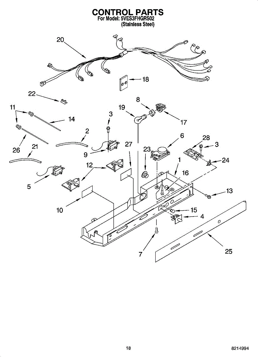 Parts for Whirlpool 5VES3FHGRS02: 11 - Control Parts