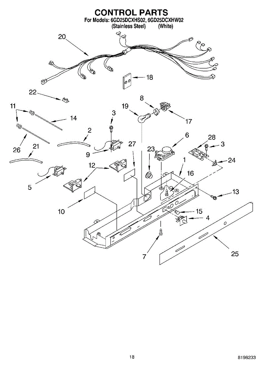 Replacement screw for securing appliance panels, mounting brackets, and internal assemblies. Restores tight connections when original screws are missing or damaged.