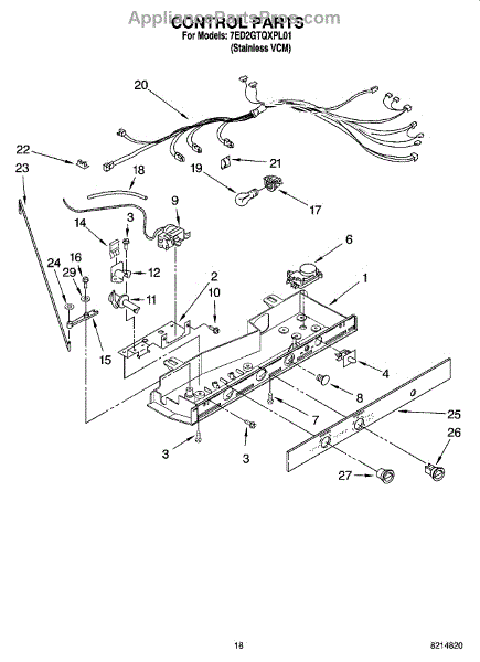 Parts for Whirlpool 7ED2GTQXPL01: 11 - Control Parts
